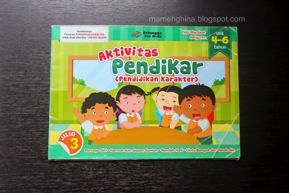 Pada sampul buku Aktivitas Pendikar tertulis untuk anak usia 4-6 tahun, namun saya belikan untuk Sera saat usianya 2,5 tahun (Semangat banget mamehnya nih). Meskipun usia Sera belum sekolah sambil baca buku ini saya cerita ke Sera kalau nanti dia sekolah, akan ada kelas, tempat bermain, teman-teman dan juga ibu guru. Jika sedang ada di kelas harus mendengarkan ibu guru, berani bertanya, tidak berebut mainan, membereskan mainan, minta maaf kalau berbuat salah, mengantri dan lain-lain. Semua pesan itu 'dibungkus' rapi melalui cerita tokoh-tokoh dalam buku Aktivitas Pendikar. Saking excited ikut alur cerita demi cerita dalam buku ini Sera ngga sadar saat itu sedang saya nasihati. He-he-he.